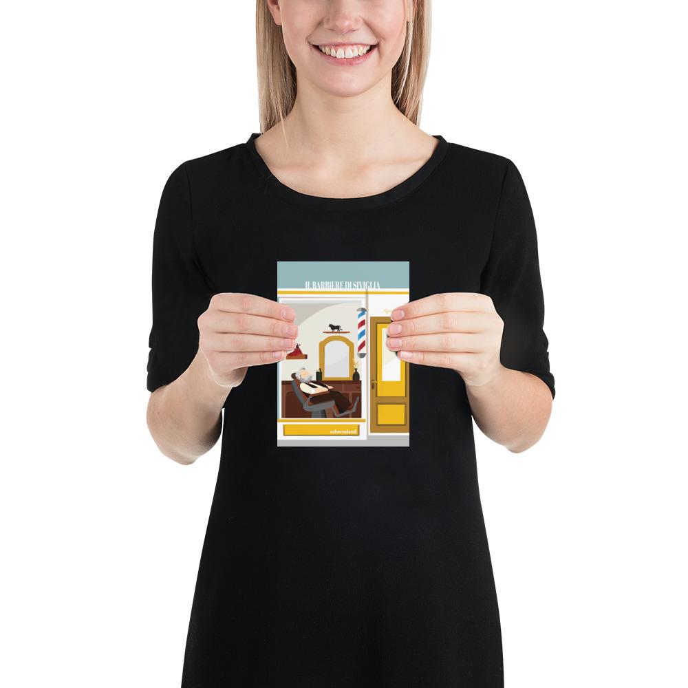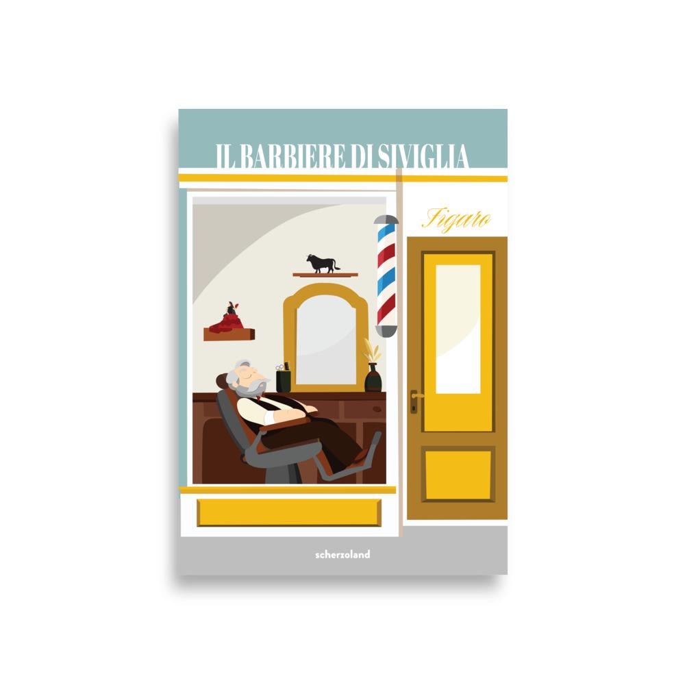 Unique and fun Barberi di Sevilla og Rossini poster where the barber sleeps a siesta