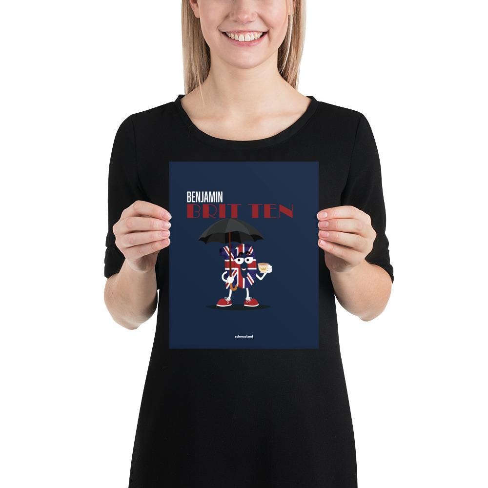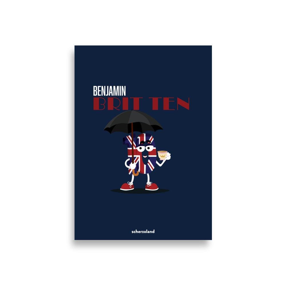 Unique and fun Benjamin Britten poster playing with the name Brit ten.