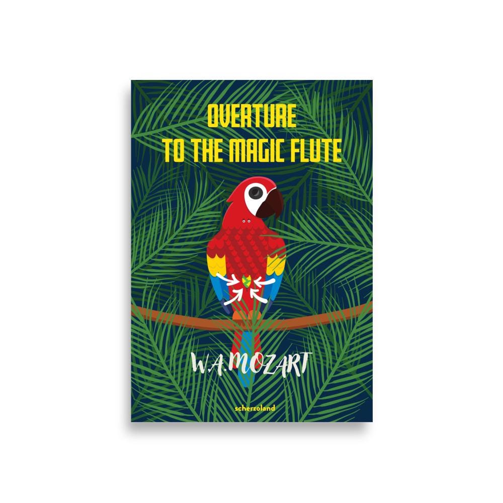 Unique and fun Mozart illustration about the Overture of the magic flute being the zipper the overture.